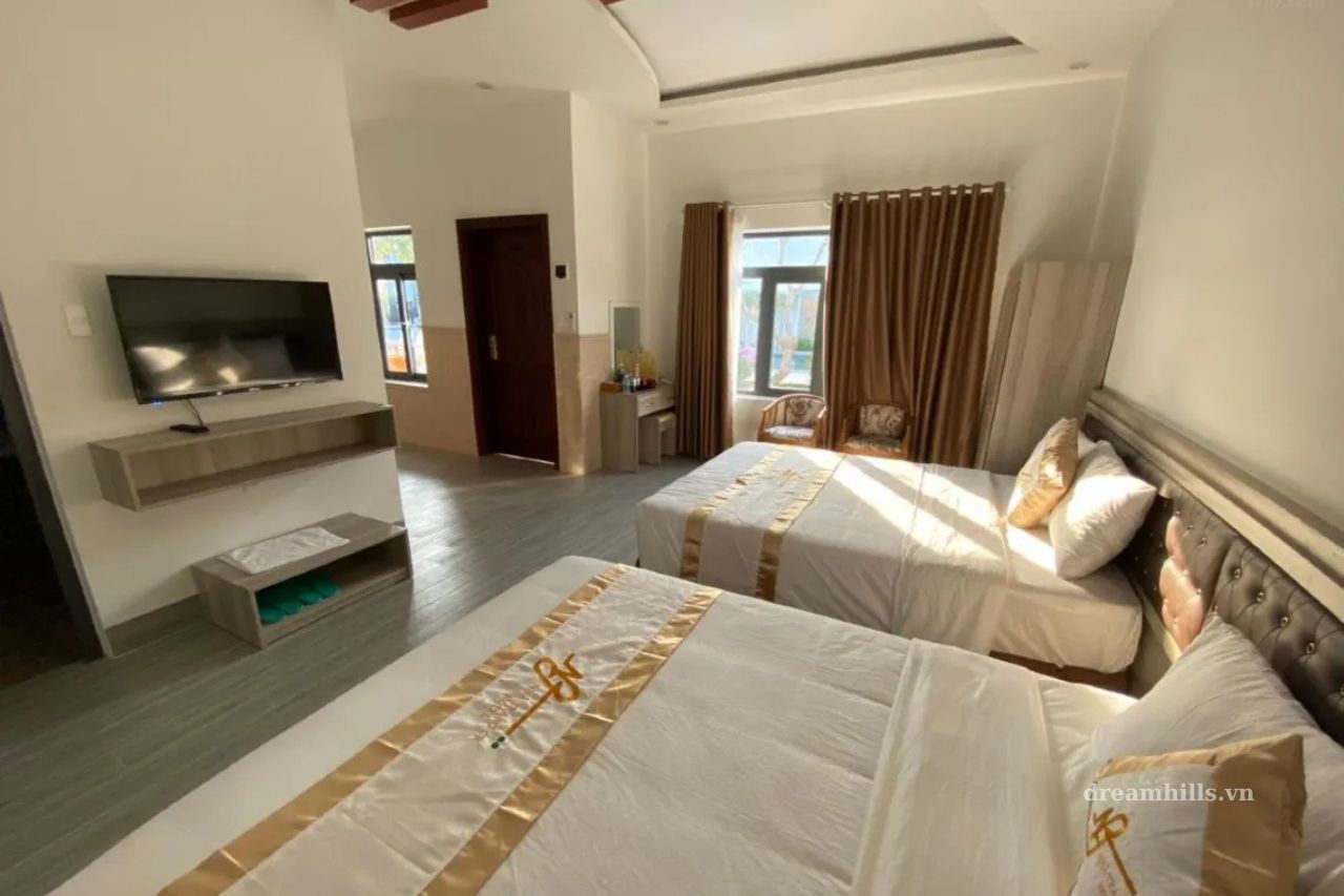Không gian đẳng cấp: Phòng nghỉ sang trọng, hồ bơi ngoài trời, và tiện nghi hiện đại đáp ứng mọi nhu cầu.